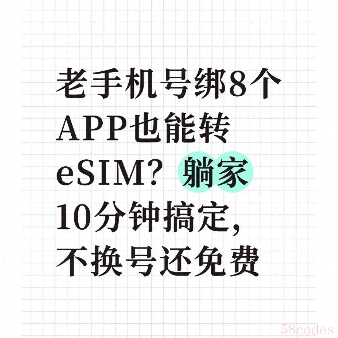 不管你是想换新款支持eSIM的手机,还是单纯觉得实体卡用着麻烦,老号转eSIM都是个不错的选择。而且现在办理免费,流程又简单,早换早享受。