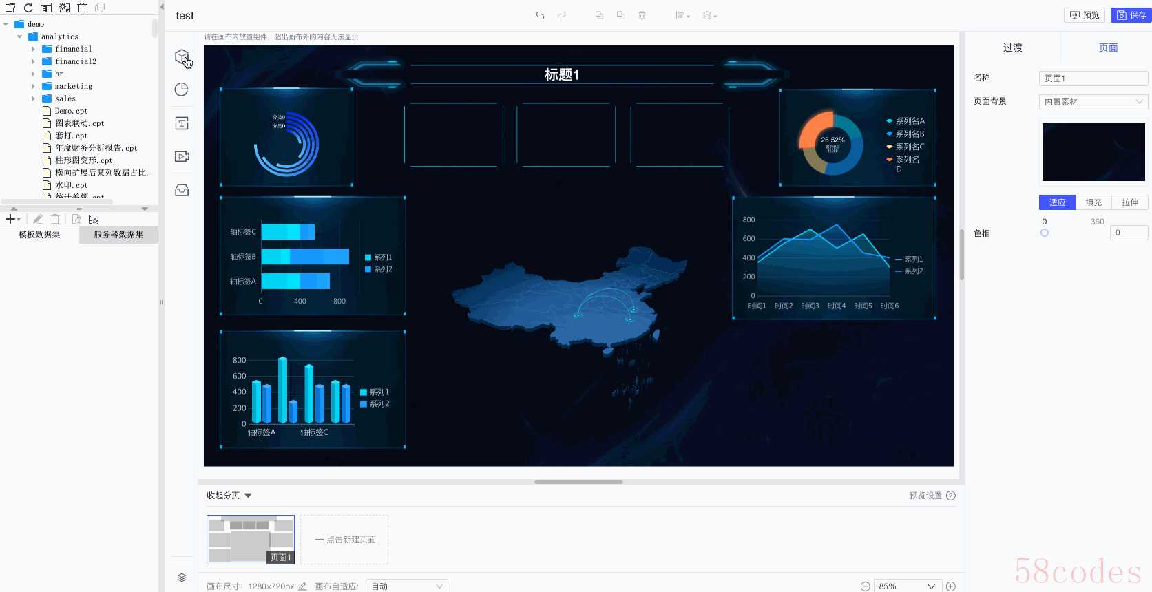大屏实际上就是一个dashboard,可以通过代码实现,从设计到开发,到最后运行,需要的周期很长,效果也不一定好。因此,大部分公司都会选择找专业做大屏的公司去完成,我就拿FineReport来介绍,如何开发大屏。