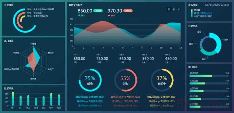 其实,把握动效设计这个度其实并不难,只要看的舒服不影响数据清晰展示就可以,有数据展示的页面最好动的地方不易过多,如果要多,几个动画就得有节奏的变化,例如一个动画表现的视觉强,另一个就表现稍弱化,有强有弱、有主有次节奏才会舒服,同时动效能结合数据的变化而变化最好,这样就不容易看数据内容被动画抓走眼球。