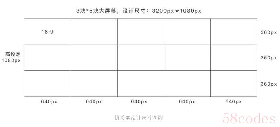 拼接的每块小屏一般是16:9的高清屏,设计尺寸可以把上下高度设定为1080px,长度按照拼接屏的数量比例得出长度的设计尺寸。例如3乘5的一块大屏幕,高度3块屏设为1080,每块高就是360,360除9乘16等640,640就是一块屏幕的长度,640乘5块屏=3200最后得出设计稿尺寸就是:高1080px乘宽3200px。