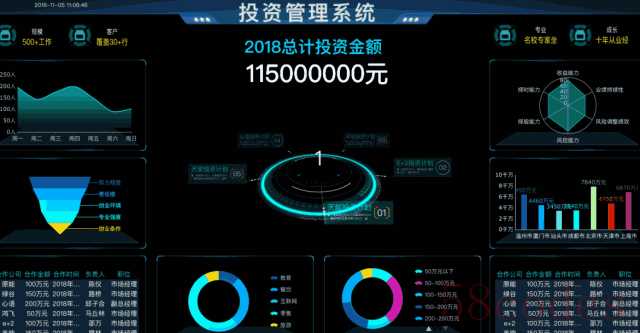 我把大数据可视化大屏分为两种,一种“纯展示型”另一种“展示+功能型”。纯展示型几乎没有交互,后台录入数据,在大屏上展示就行了。展示+功能型,例如实时监控数据、采集数据、数据对比功能、云计算数据、分析与预警等等。