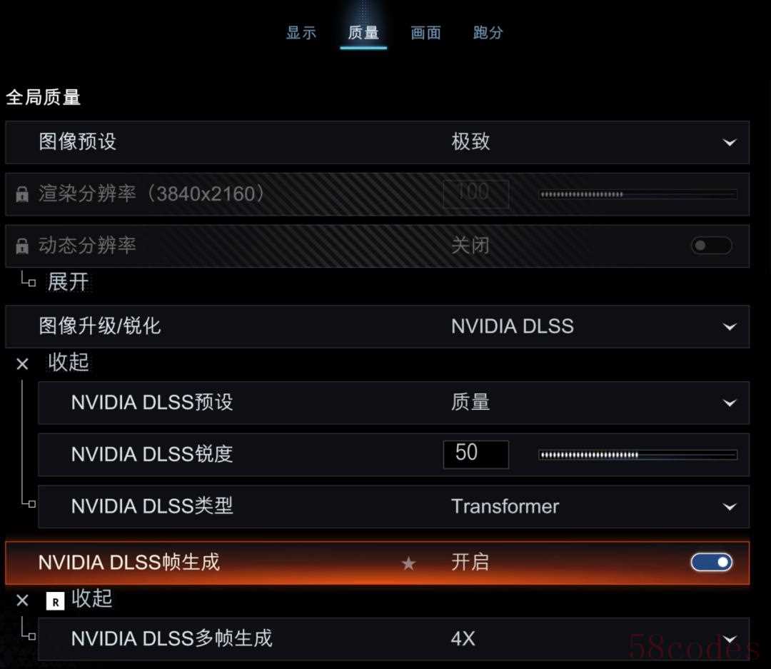 "帧生成技术:" 这是DLSS 4最关键的创新。它不仅像以往那样通过插帧提升帧率,更能将渲染分辨率降低到一半(例如从4K降到2K),然后由AI算法智能