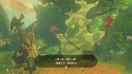 克洛格族给林克扩充装备槽的伯库林,见到林克全裸会高兴地唱起歌来。“全身上下~脱光光~”