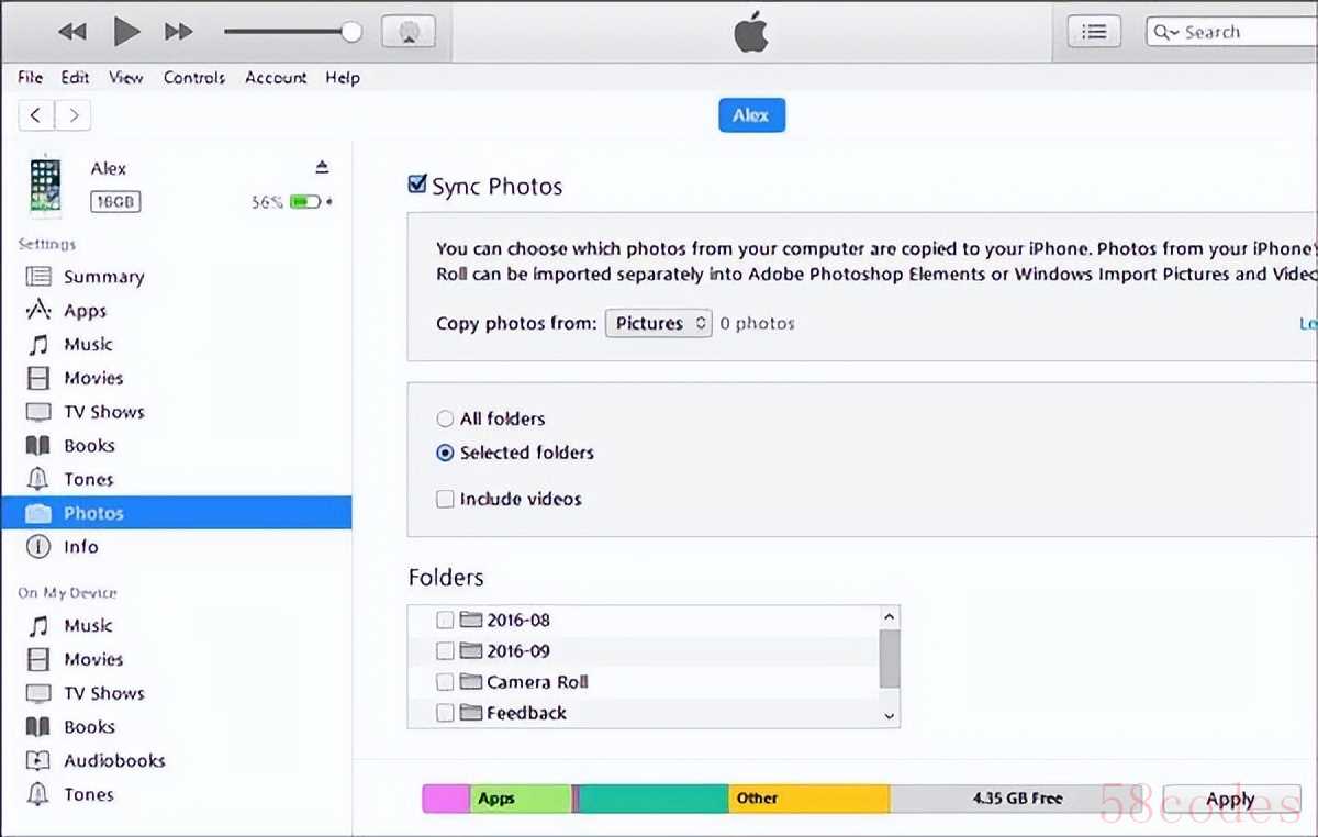 - 运行 iTunes 并将 iPad 连接到电脑。然后单击iPad图标,选择“照片”选项,然后选择“同步照片”功能。