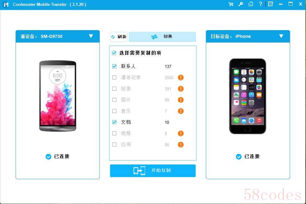 以下是使用Coolmuster Mobile Transfer从三星手机传输照片到iPad的简单步骤: