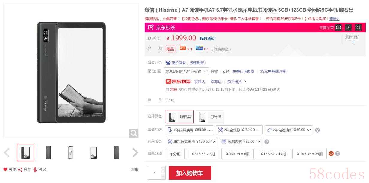 据了解,海信5G阅读手机A7经典版售价1999元,12月22日18:00在电商平台正式开售,用户购机可享12期免息等3重福利,评价可获赠30元E卡,更有一年碎屏换屏、两年全保修、两年电池保修、黑科技充电宝以及数据恢复等保障服务可供选择。CC版售价2399元, 2月1日正式发售。