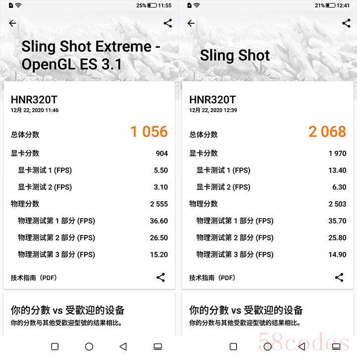 尽管不太可能有玩家使用海信5G阅读手机A7游玩手游,但为了测试GPU的性能,我们仍使用3D Mark的Sling Shot Extreme和Sling Shot为海信5G阅读手机A7跑分。海信5G阅读手机A7在这两项分别获得了1056分和2068分,表现十分优秀。