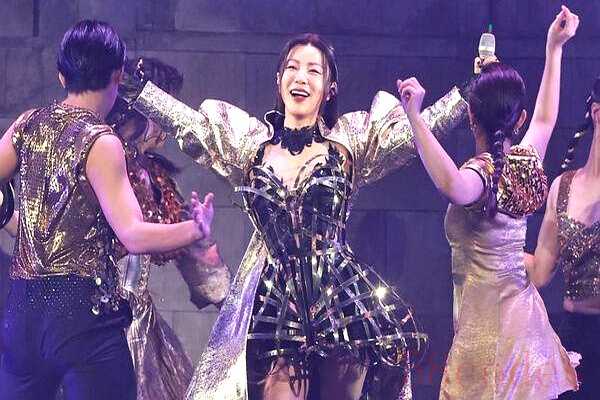唱到〈你为什么说谎〉,她降回主舞台,把外套猛地撕开,露出里面金色贴身甲,观众尖叫。