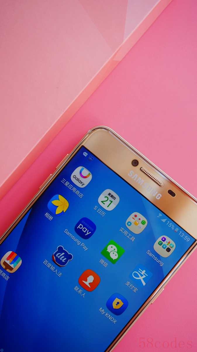 首先在主题上三星Galaxy C系列根据不同的机身颜色定制了专有风格的UI,与金色的机身相互映衬,看起来金属质感浓烈。