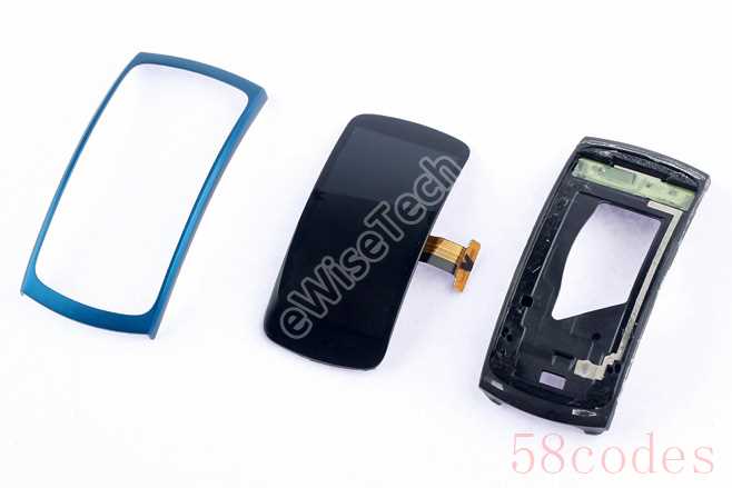 1. "外观和后盖:" Gear Fit 2采用一体式设计,后盖通常由聚碳酸酯(PC)或类似材料制成,边缘有卡扣。拆解时需要使用塑料撬棒小心地撬开,避免损坏外壳或内部触点。