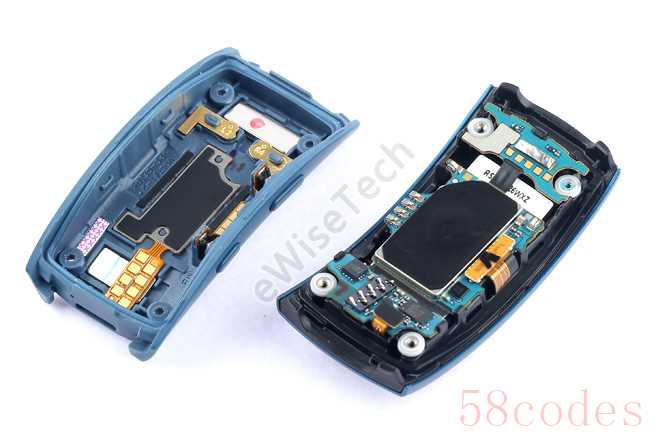电路板为软硬结合板,通过卡扣固定。主板上一共有两处连接到天线的地方:上方振动马达的接地外壳和下方金属弹片一个。