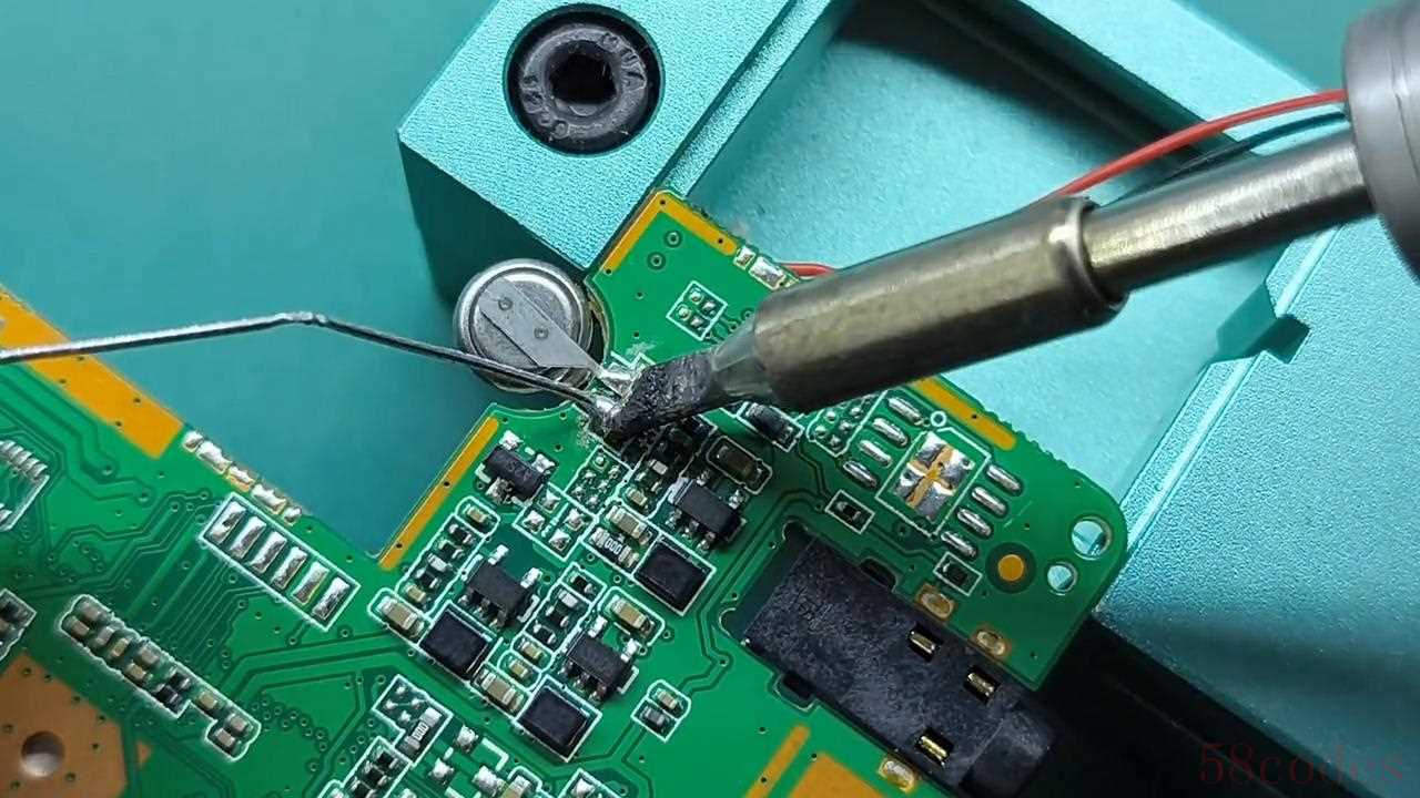 现在有一只银胶已经拆开了,把它翘起来,用胶带把垫子包裹起来,这样用链子夹的时候才不会短路。焊接以后把这个胶带取下来,还要给垫子打一点胶,防止震动的时候让这个焊点脱落。等胶凝固以后就可以装上去了。开机以后把它的时间重新设置一下,以后就可以一直保持这个时间了。