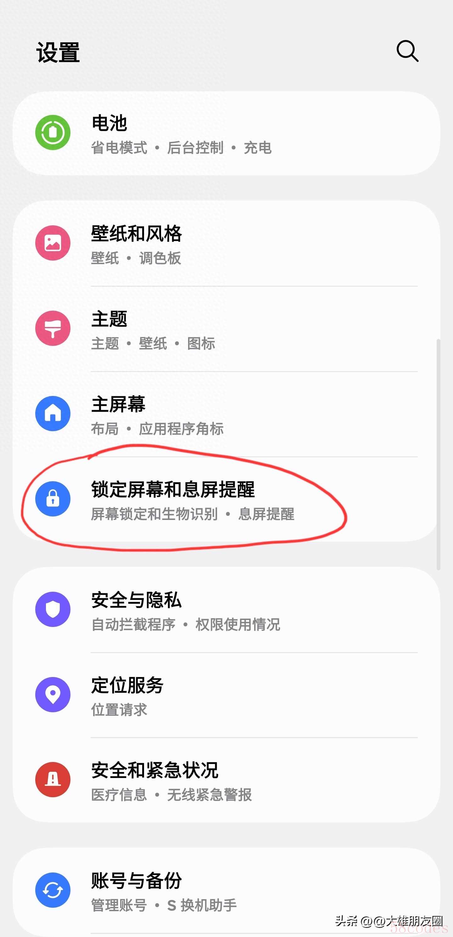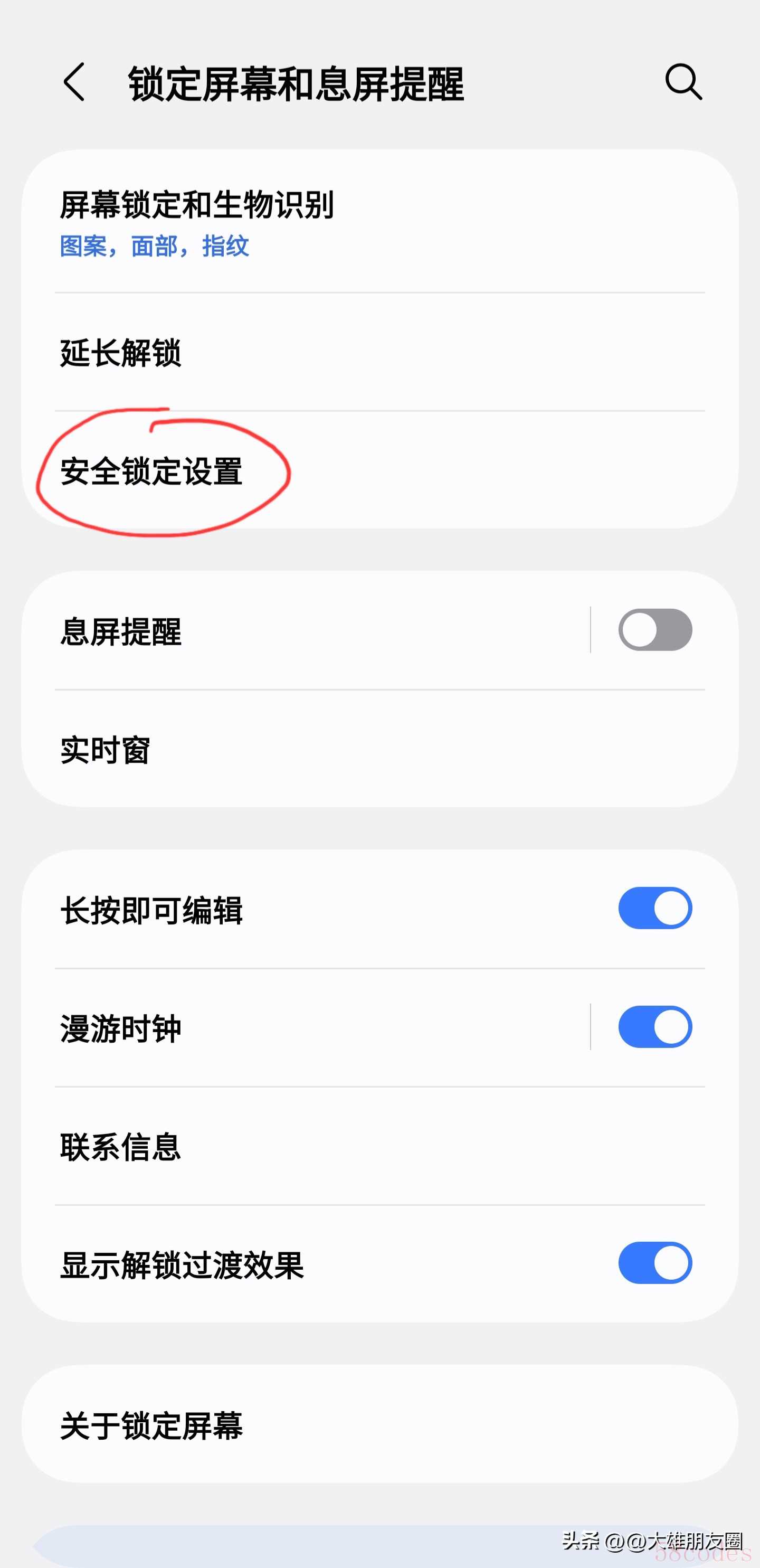 首先打开三星手机设置,找到锁定屏幕和息屏提醒,点击进入,找到安全锁定设置,将安全锁定设置里的锁定网络和安全按钮打开,这样,当你手机丢失后,别人就不能关闭网络了,可以保持手机定位开启,方便你可以后台网络账号控制手机。