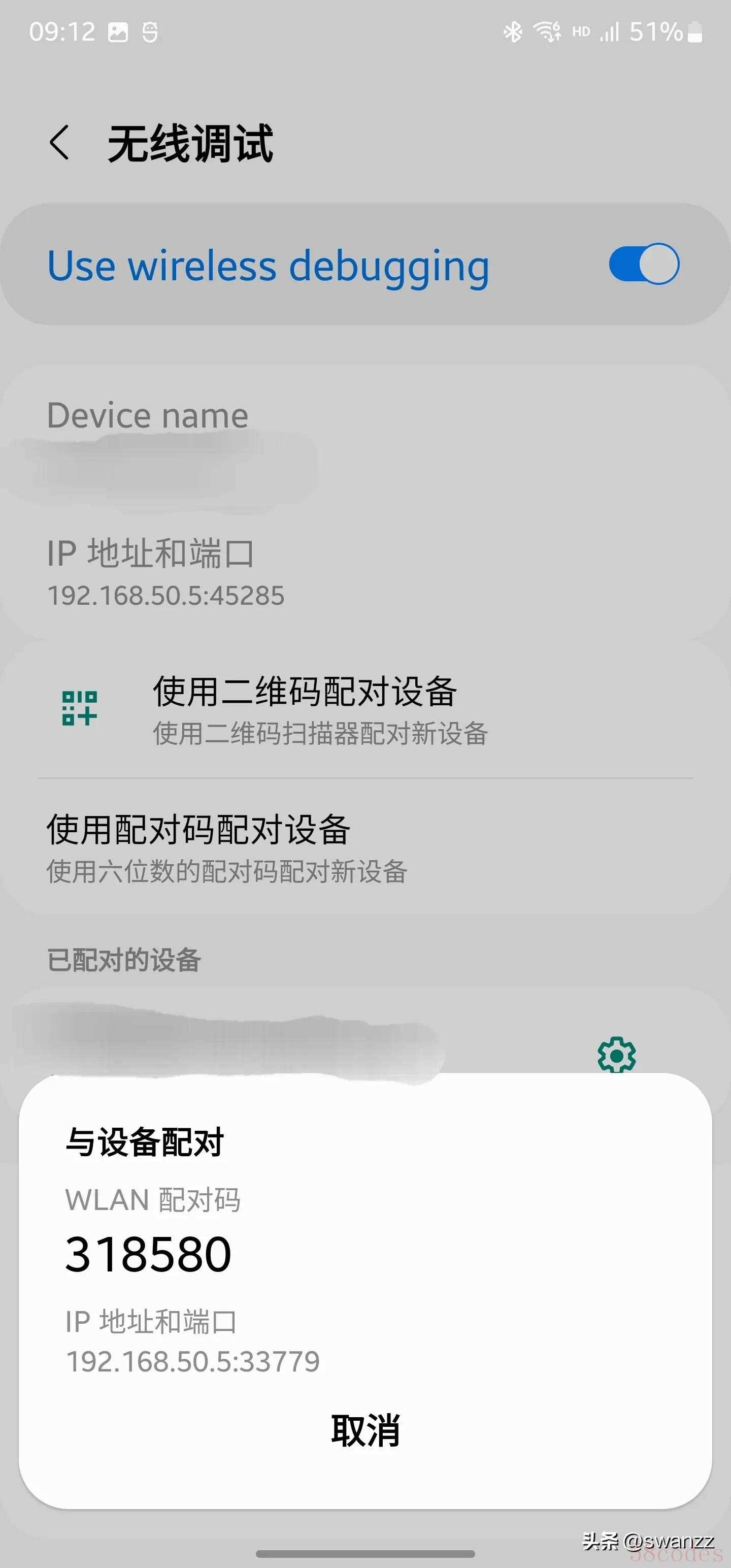 adb pair 192.168.50.5:33779