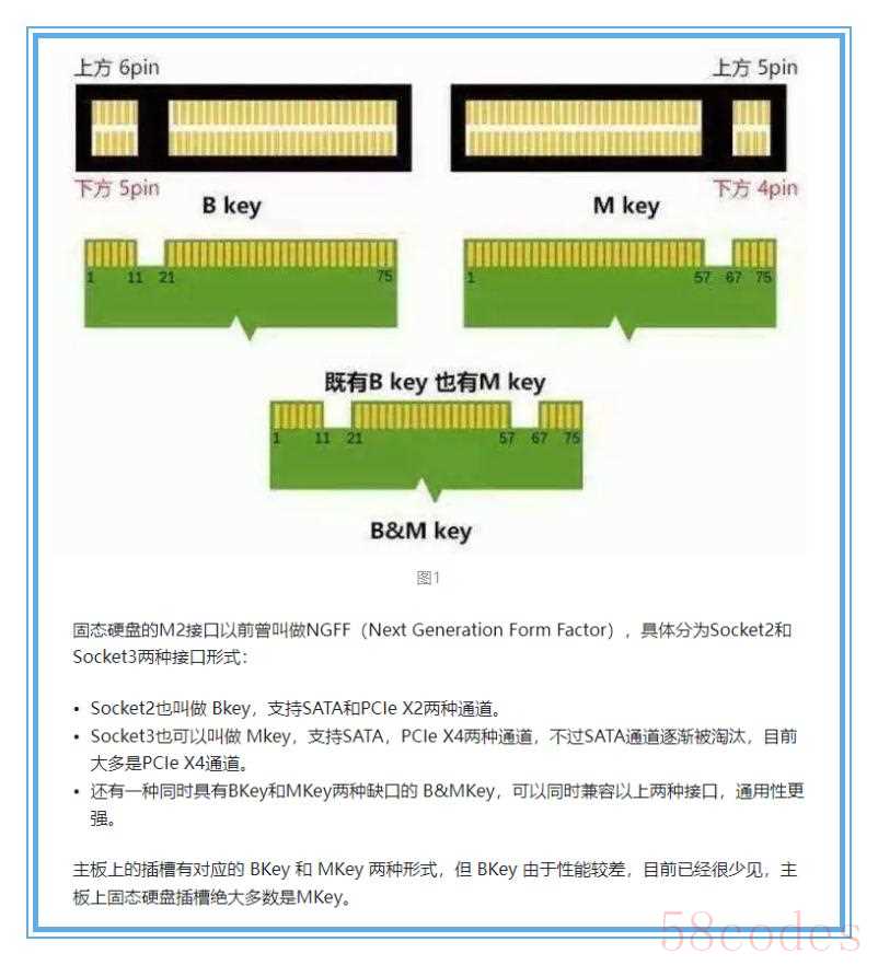 M2 SSD接口又分3种金手指:Bkey、Mkey、B&Key,缺口数量和位置都不一样;