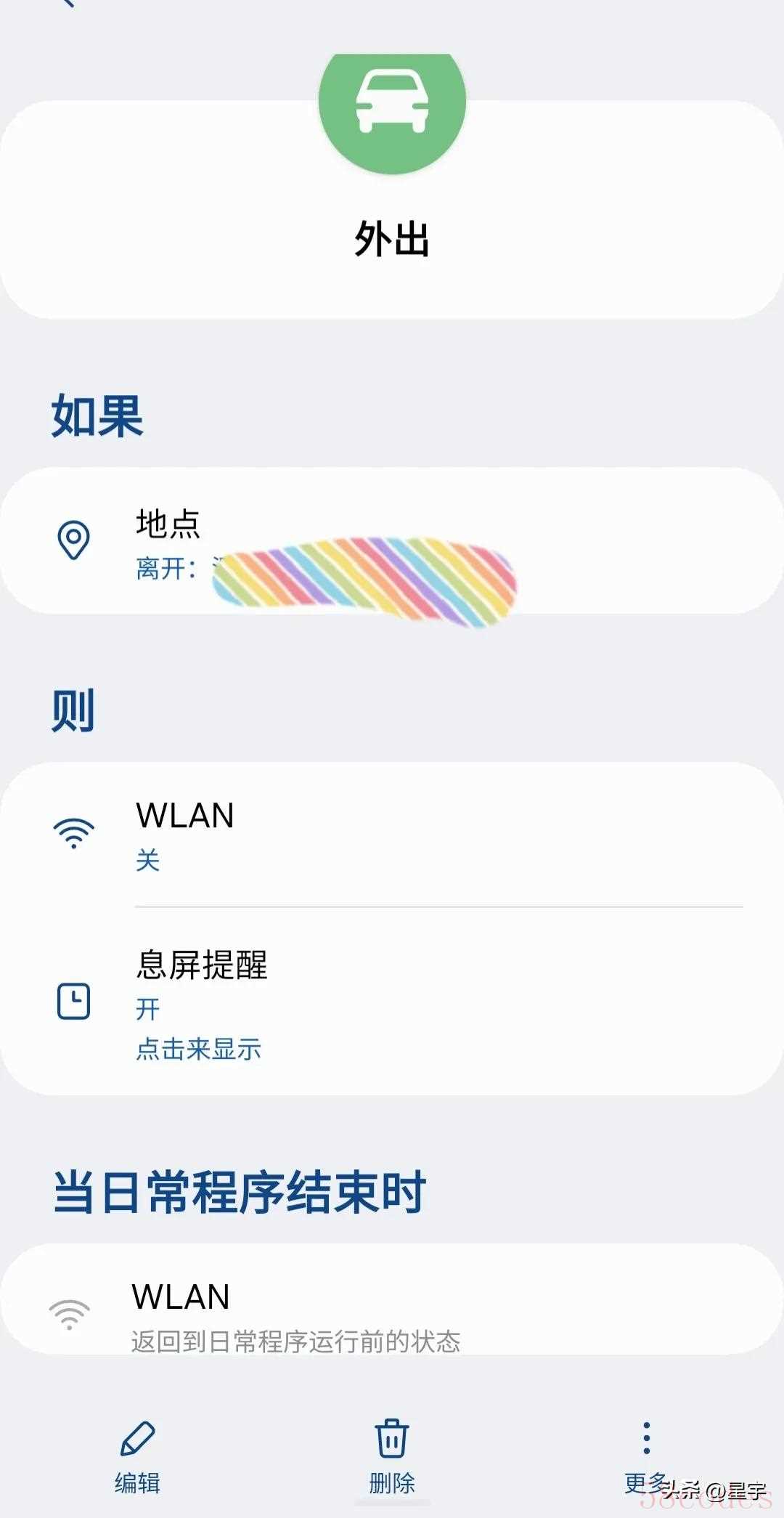 - 当离开家大概100米时自动关闭wifi,并开启户外模式,既可以省电又不不用操心。