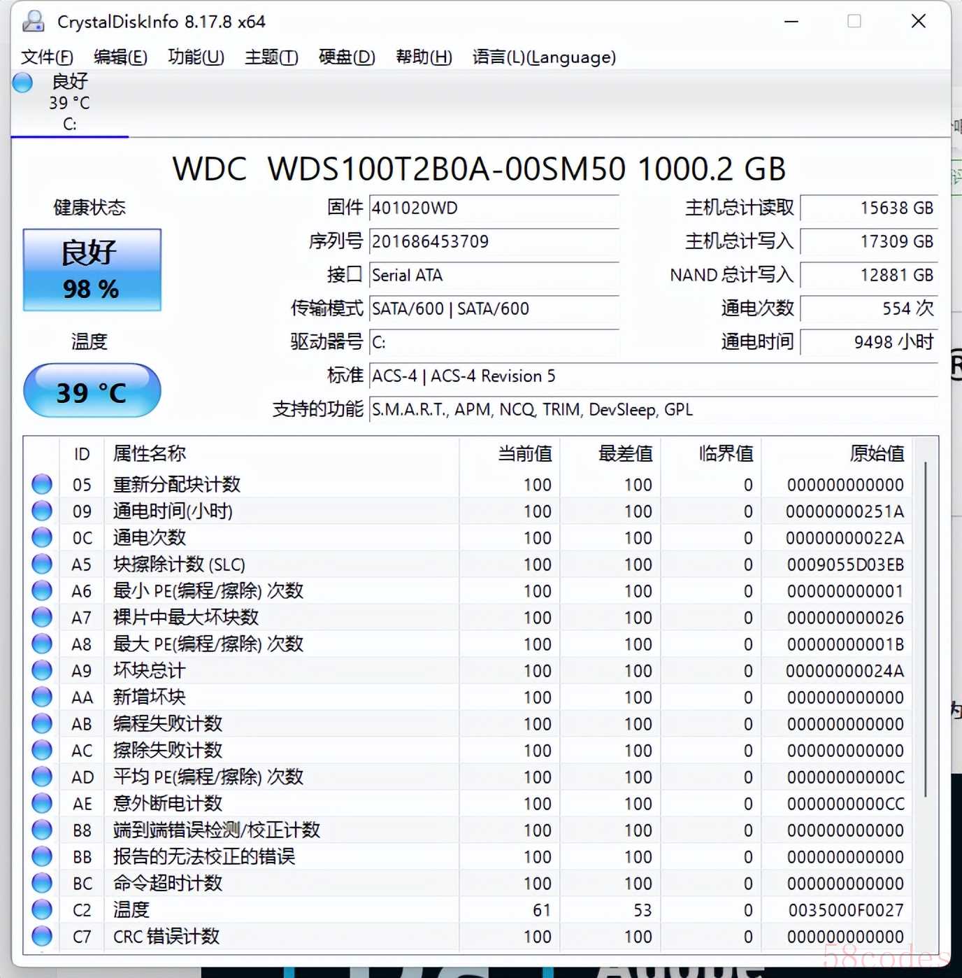 自检的方法很简单,首先下载并安装一个 CrystalDiskInfo,这个软件可以扫描并查看硬盘信息。