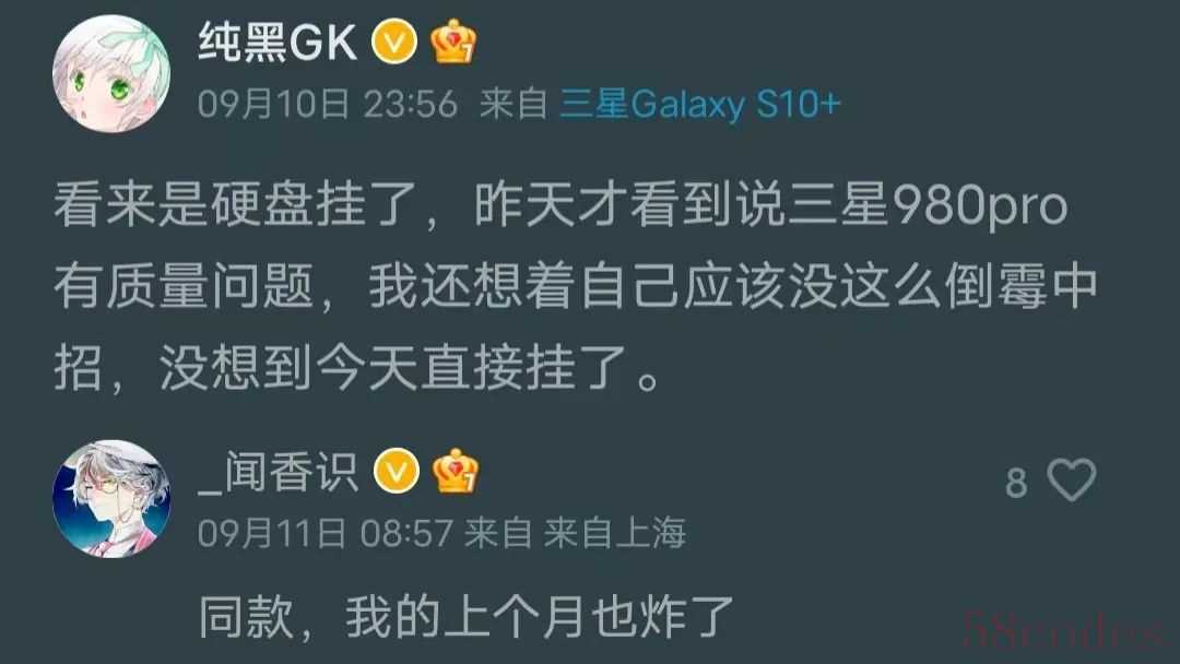 但是托尼在网上看了一圈,发现三星的固态硬盘出现问题并非个例,确实有不少人中招,而且从前几个月就开始了,这其中还包括 UP 主纯黑和闻香等人。