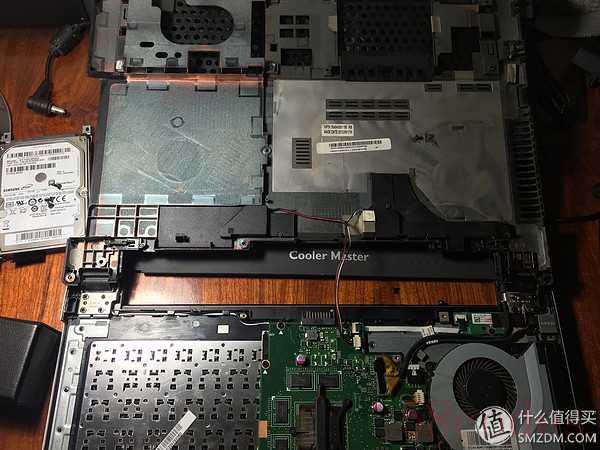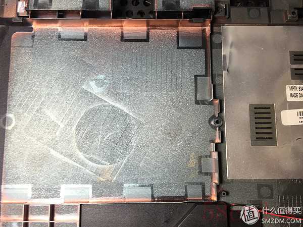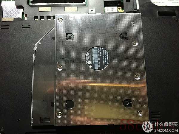这里我忘记了照拆掉硬盘的照片了,拆掉后我就傻眼了,为什么我家的驱动和别家的长得不一样,我的光驱是在底板上的。这时候我突然想起了,我的底板那里好像有个东西。