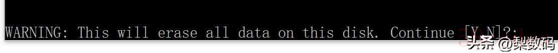 会提示数据被清除,输入 Y 确认: