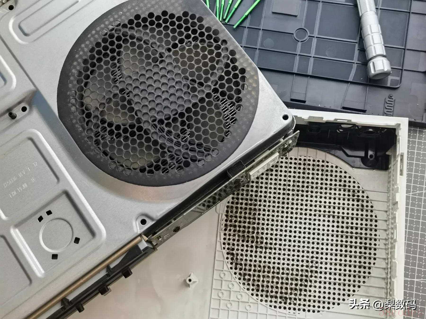 内部清灰就简单了,和普通电脑一样,主要就是风扇,还有一些缝隙,清理完看起来又是一片新: