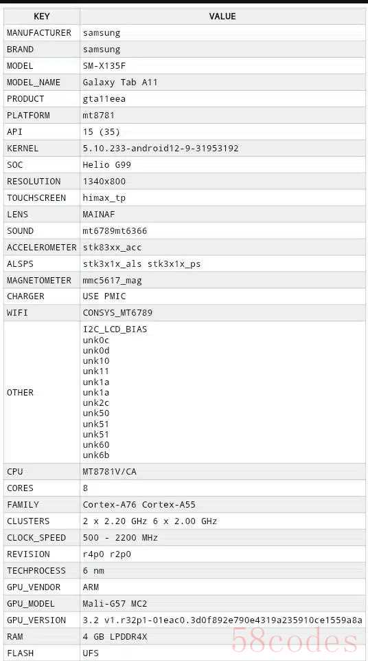 IT之家 9 月 6 日消息,科技媒体 SamMyGuru 昨日(9 月 5 日)发布博文,分享了一张图片,展示了三星最便宜平板 Galaxy Tab A 系列新成员 Galaxy Tab A11(型号 SM-X135F)的完整规格参数。