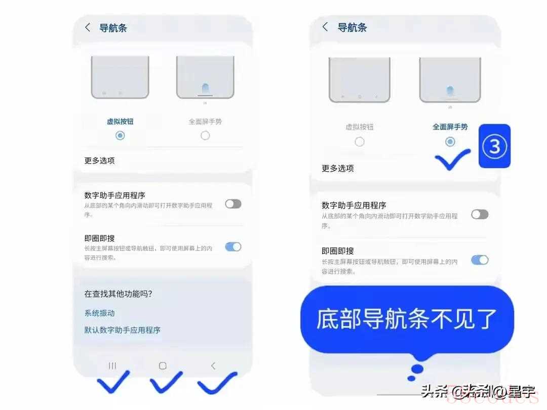 1.设置>显示>导航条>把"虚拟按钮”改成“全面屏手势”:可以隐藏底部导航按钮,不喜欢导航按钮的朋友可以设置