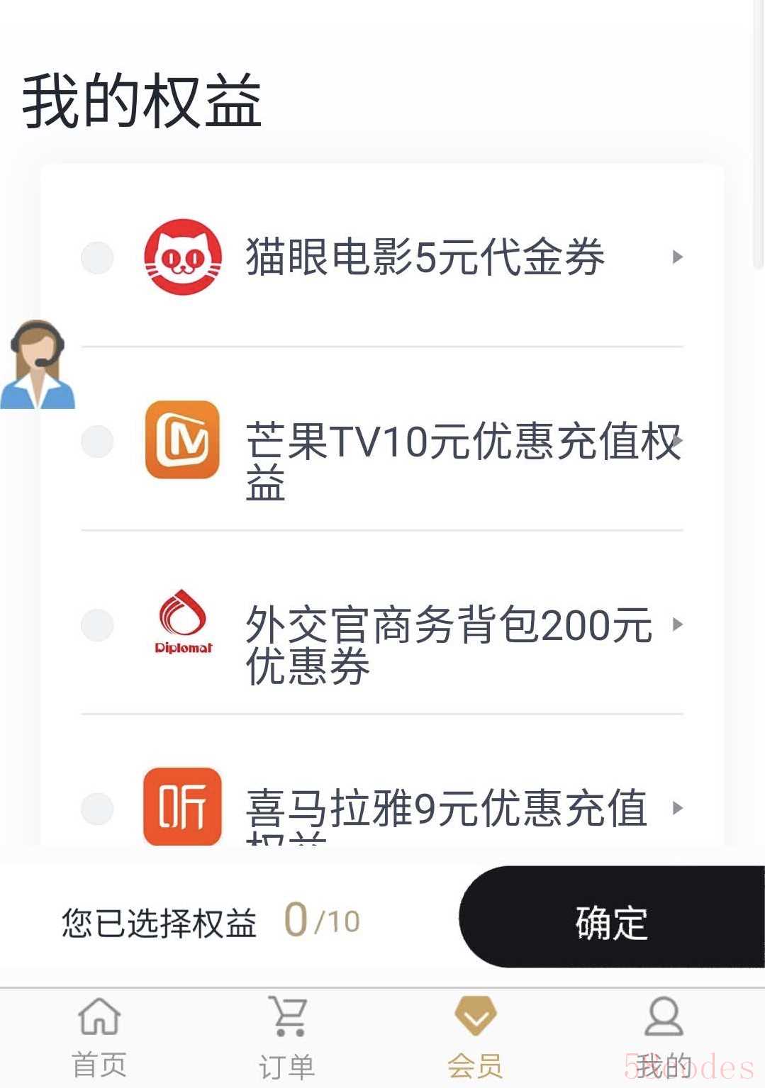 据安徽合肥的汪先生提供给界面新闻的截图显示,在闪电优品“会员”板块可发现,用户一共可选择10项权益,包括“猫眼电影5元代金券”、“喜马拉雅9元优惠充值”、“11.8元买爱奇艺月度会员”等。