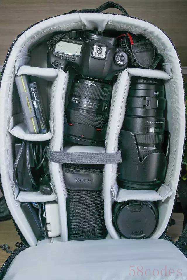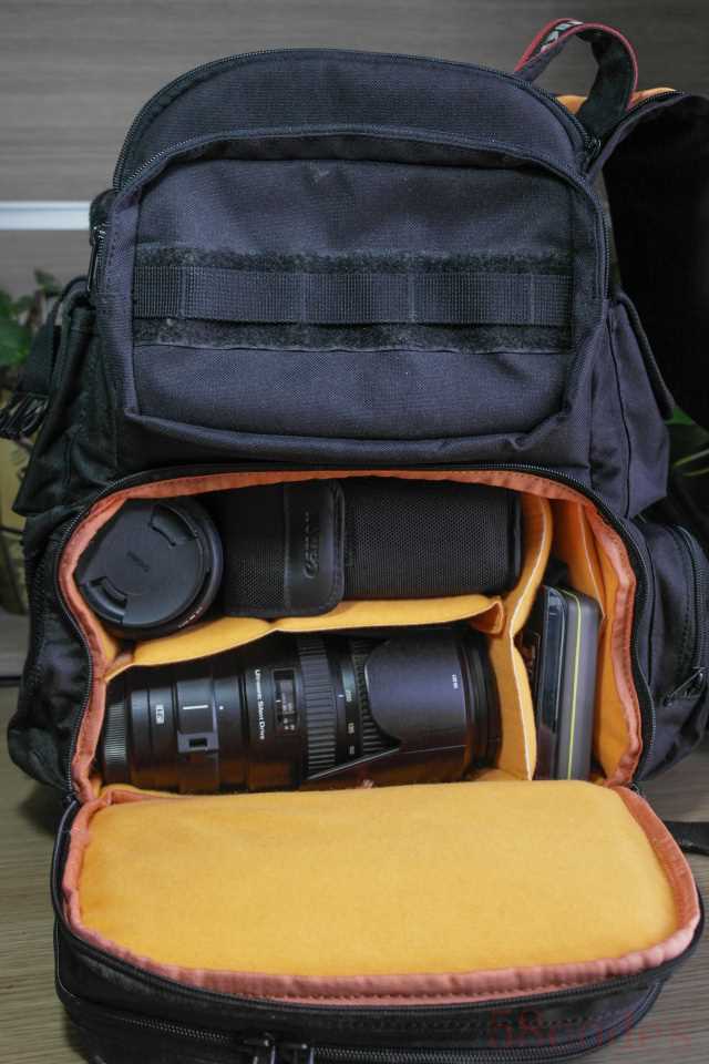 • 就个人习惯来说,我是比较倾向将相机放在摄影包的顶部的,一来是方便取拿,二来也是为了安全。