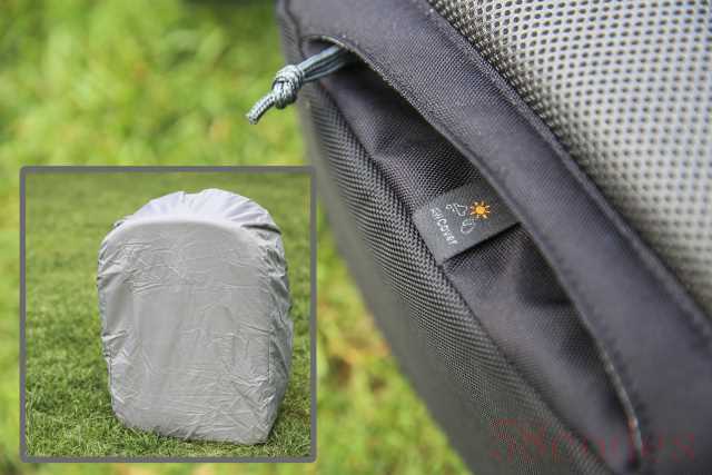 另外,此前讲过,防雨罩也是摄影包防盗的一大利器。克拉300同样设计了隐藏式一体化的遮阳、防雨罩,与包身底部相连。