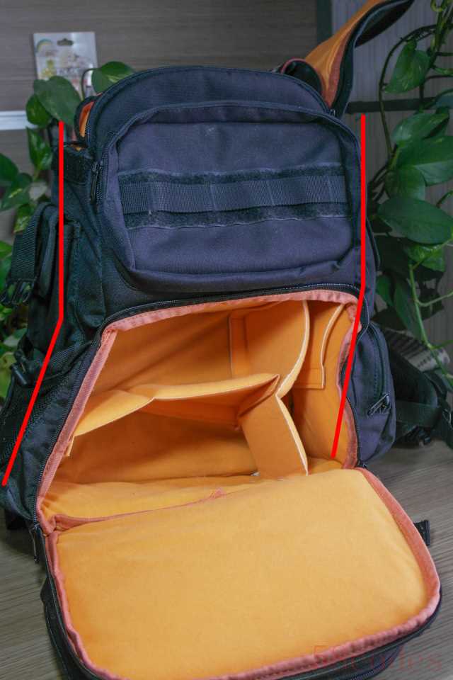 • 但出去拍摄不可能每次都带那么多的器材,如果下部没有装满,包就会出现这个问题: