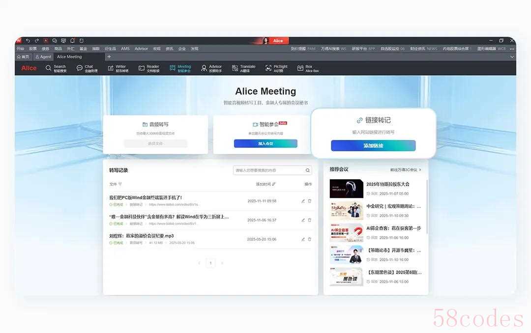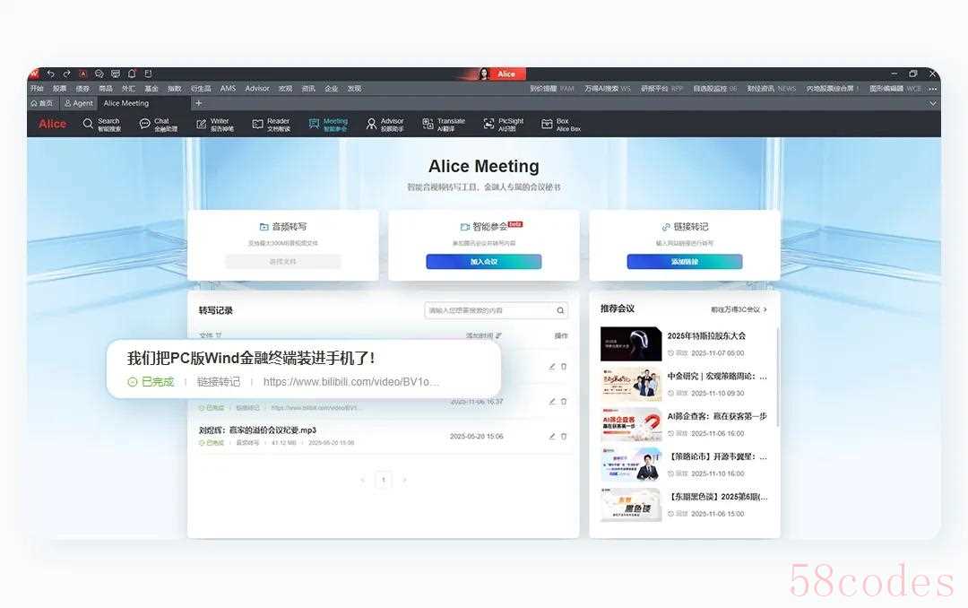 Alice Meeting「链接转记」,帮你把音视频里的 “干货”,直接变成 “可用的投研素材”。
