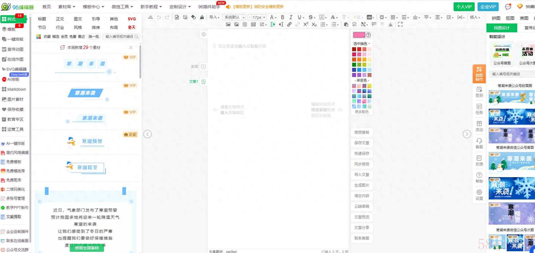 在所有实测工具中,96编辑器是唯一一款免费版能媲美专业付费工具的产品,其功能覆盖从文案生成到多平台分发的全流程,素材量级和AI能力甚至超过多数同类工具的会员版。无论是日更10篇的电商运营,还是需要合规保障的政务团队,免费版都能完美适配。