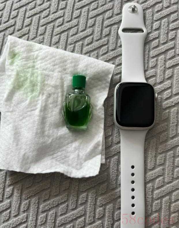 - 把风油精滴在洗脸巾上(注意不要直接滴在表带上,避免染色!);