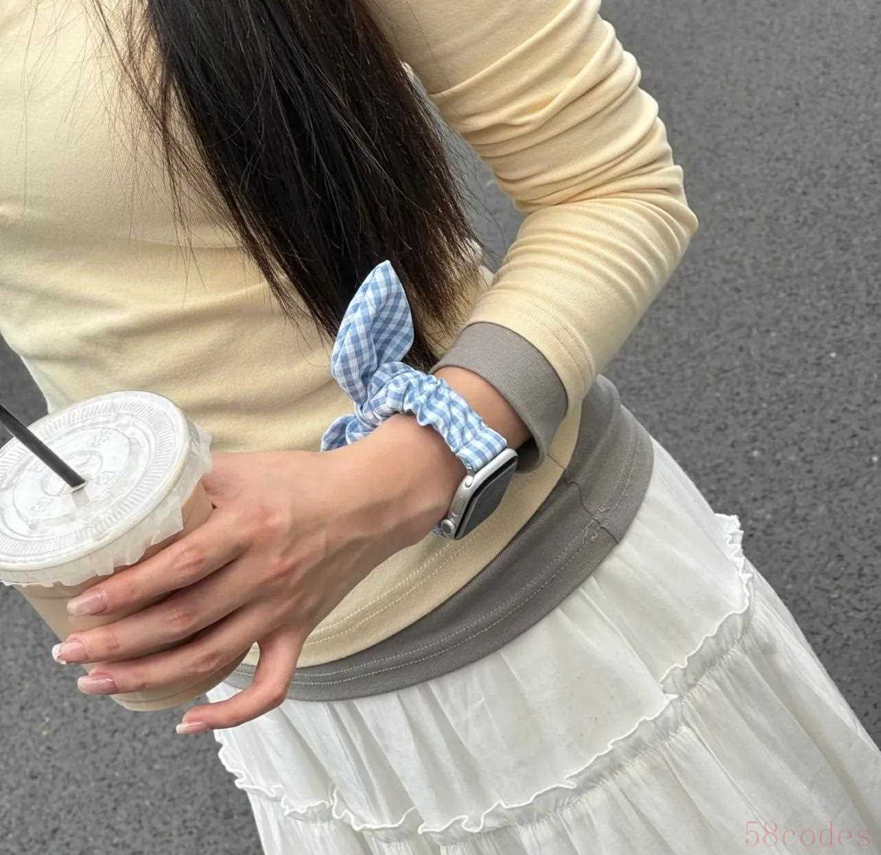 或者把表带换成松紧发圈,软软的,戴一天都不勒手,还能顺带搭配穿搭,漂亮又舒适。