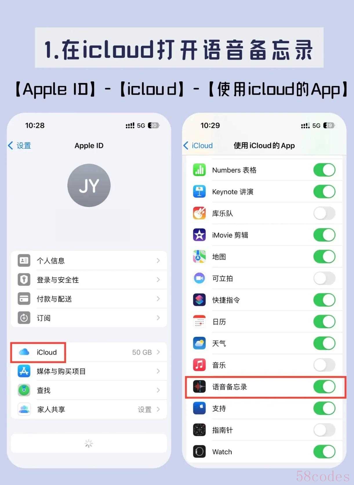 - 【设置】-【Apple ID】-【iCloud】-【使用iCloud的App】-打开语音备忘录;看演唱会时打开手表的【语音备忘录】,点击录音按钮。