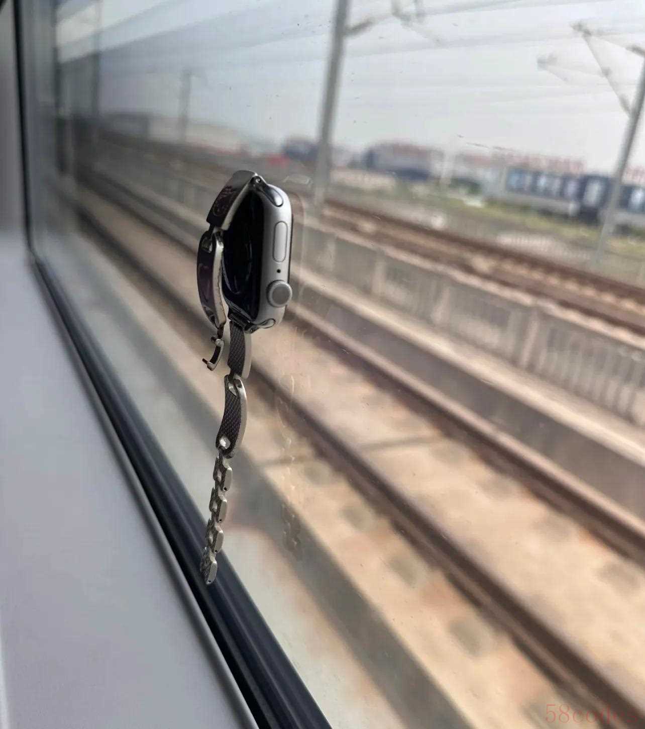 之前有人在坐高铁时,顺手把Apple Watch放到了玻璃窗上,结果一放上去就被牢牢吸住了!