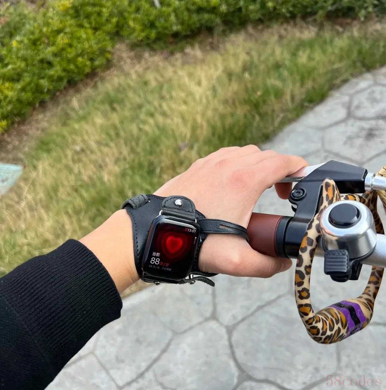 还有人更厉害,自己DIY了一条超薄皮质表带,骑车时一抬手就能看导航,看时间也不用翻来翻去,实用又有创意,还很炫酷!