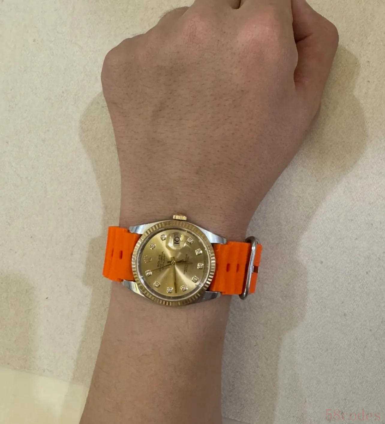 有喜欢戴黄金的网友就把表带拆下来,直接换上自己喜欢的金手链。以前手表和金饰要分开戴两只手,现在合二为一,既好看又方便。