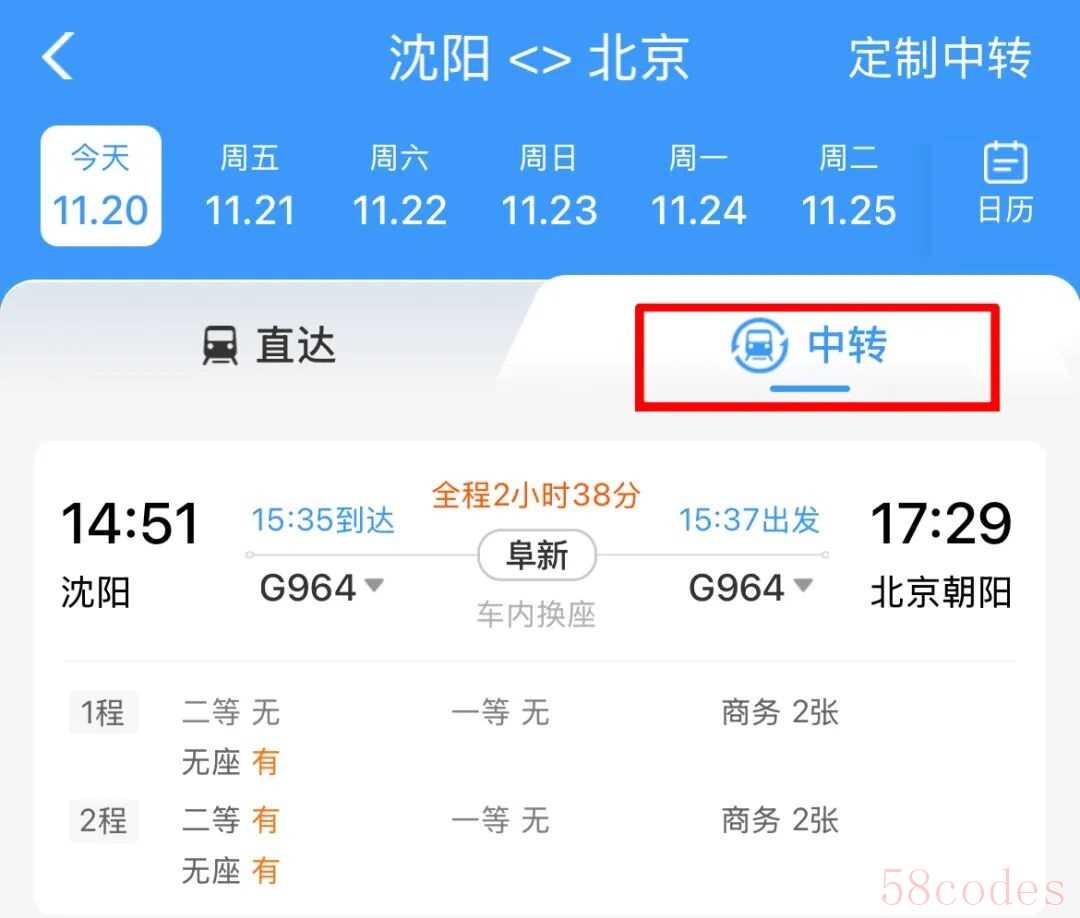 不同车次的换乘方案