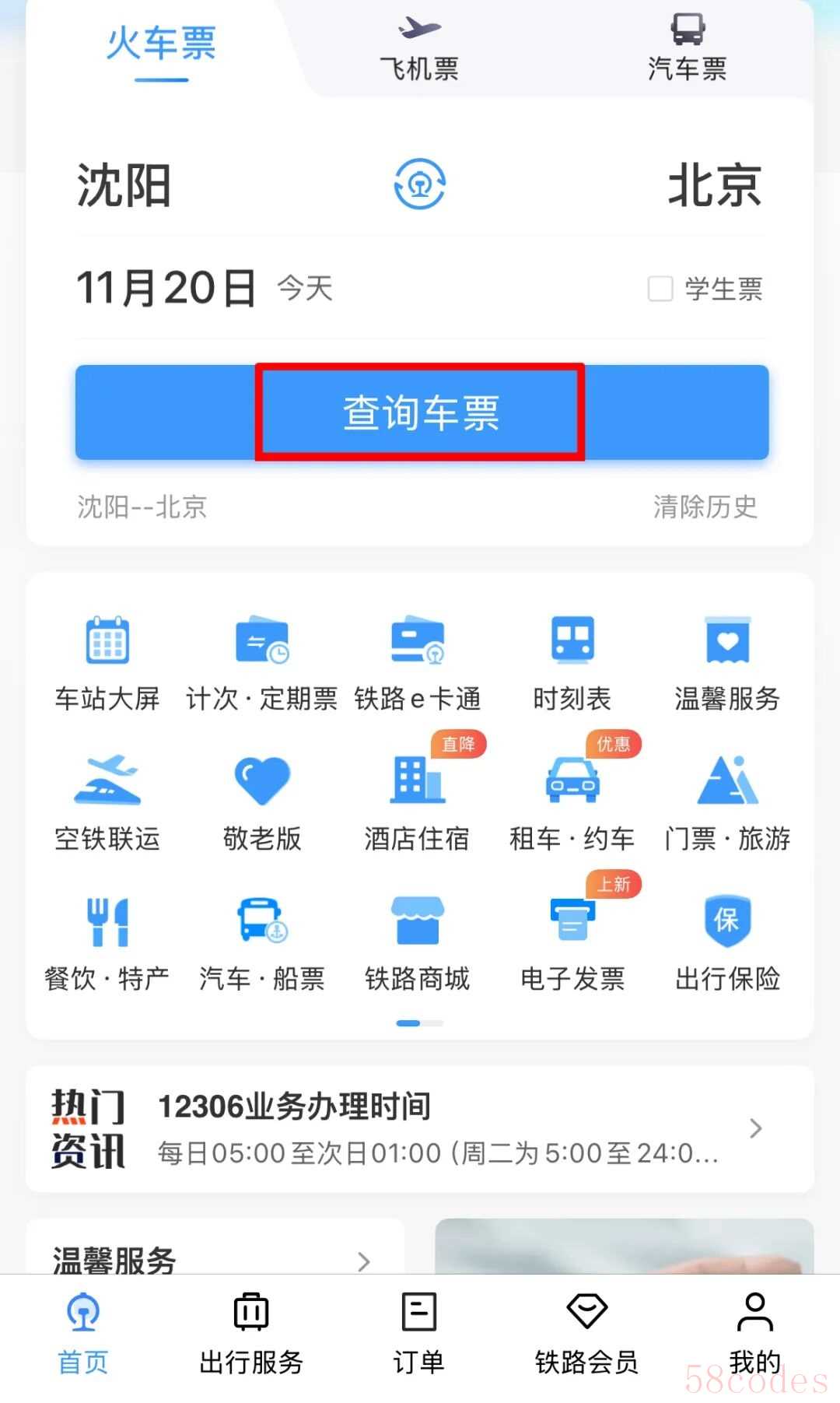 点击查询车票