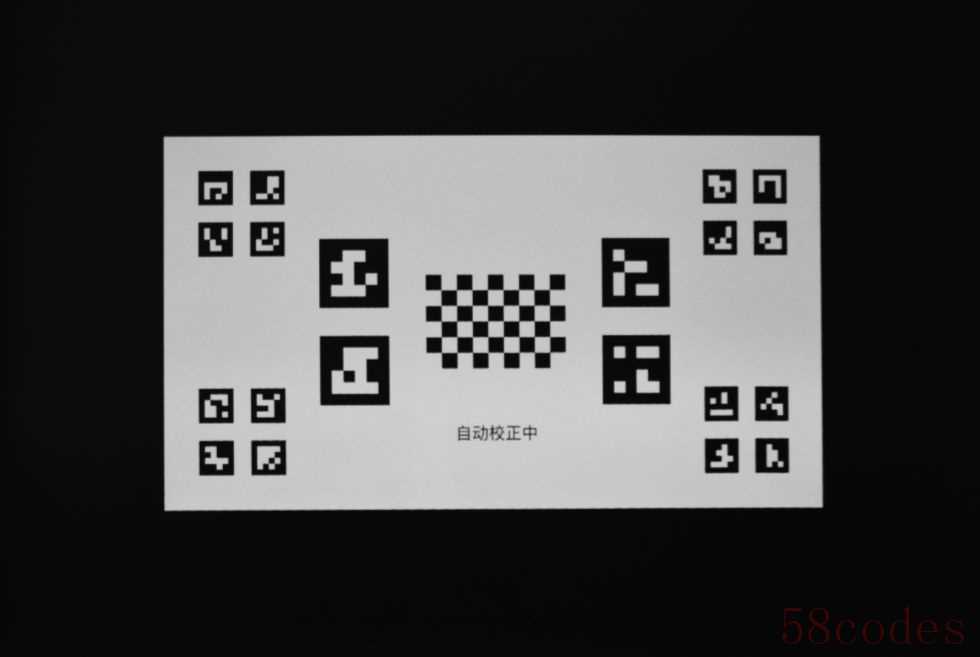C1开机后的第一件事,就是自主进行焦距调节,而后投影画面四周出现大大小小的“二维码”,这是机器在进行梯形校正。如果墙面足够大也没有什么遮挡物的话,一面超越寻常电视的高清大屏就出现了,期间其完全不用自己动手的。