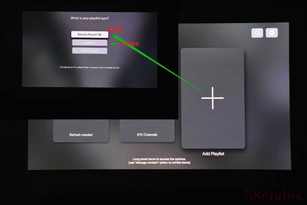 首先是Apple TV的“本土化”的配置,需要借助到iplayTV应用。在知名的开源代码网站github上,找到Apple TV“直播源”(一串地址),也就是中国本土的电视节目源(关键词“源”)。操作很简单,打开iplayTV软件后点击大大的加号,随后来到如下配置,第一行添加TV源,第二行选填“节目清单”。