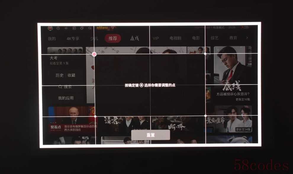 其实不仅仅是Vidda C1,几乎所有的主流投影仪产品在自动梯形校正,对焦上都有不错的功底,而最考验这项功底的就是“侧投”。比如说有码君拍出前文提到的微打孔安装,就是担心投影仪在某个不经意间掉下来...伤人又伤钱包,只能偏移角度进行正面投影。