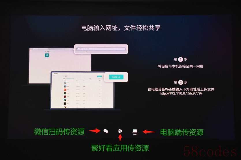 把电视或投影本身变成NAS(需要插个移动硬盘),然后就可以用手机或电脑访问这块硬盘里的文件。