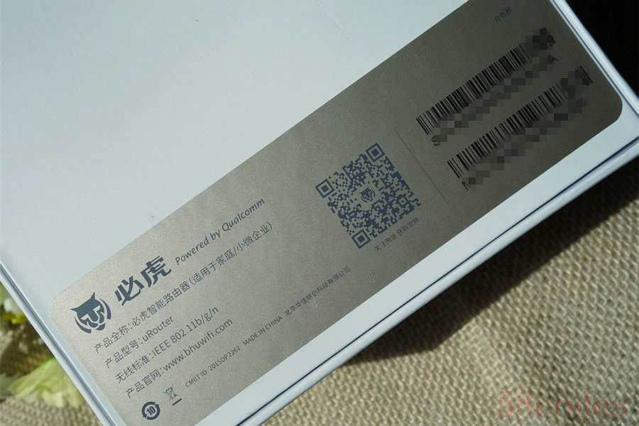 背面底部贴有暗金色的标签,关于产品型号、官网、微信二维码、MAC地址等一些基本信息。