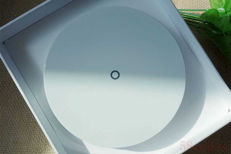 简约的白色硬质环保纸盒包装,可以隐约看到以正中亮色圆点为圆心的一个圆,一个被覆盖的圆,除之以外,别无他物。其实,这是内涵图。