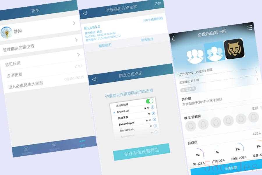 最后的“更多”界面,可以管理绑定的路由器,可以解绑或添加,但一个路由器只能绑定一个账户。当然,我们还可以反馈意见,也可以加入必虎路由大家庭。