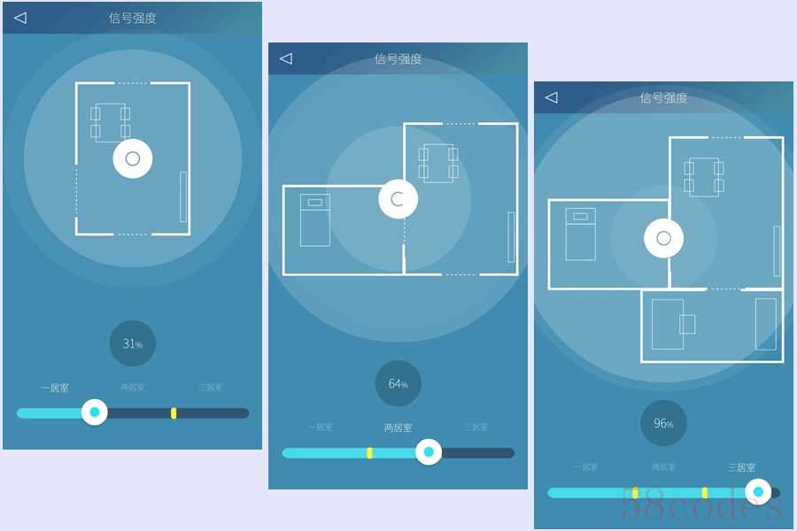 点击‘信号强度’,选择居室的设置很形象,必虎放在哪里一目了然。笔者试着调节了几次,大致是按33%划分的居室选择。当然,在百分比增加的情况下,路由所带来的信号辐射也随之加大。