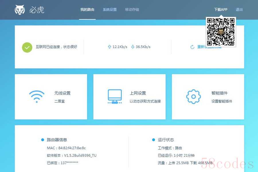 登陆后进入“我的路由”界面,右上角的‘下载APP’可下载从而实现在客户端上的操作管理。后续会讲到APP部分。